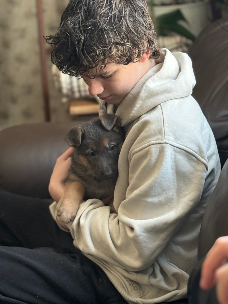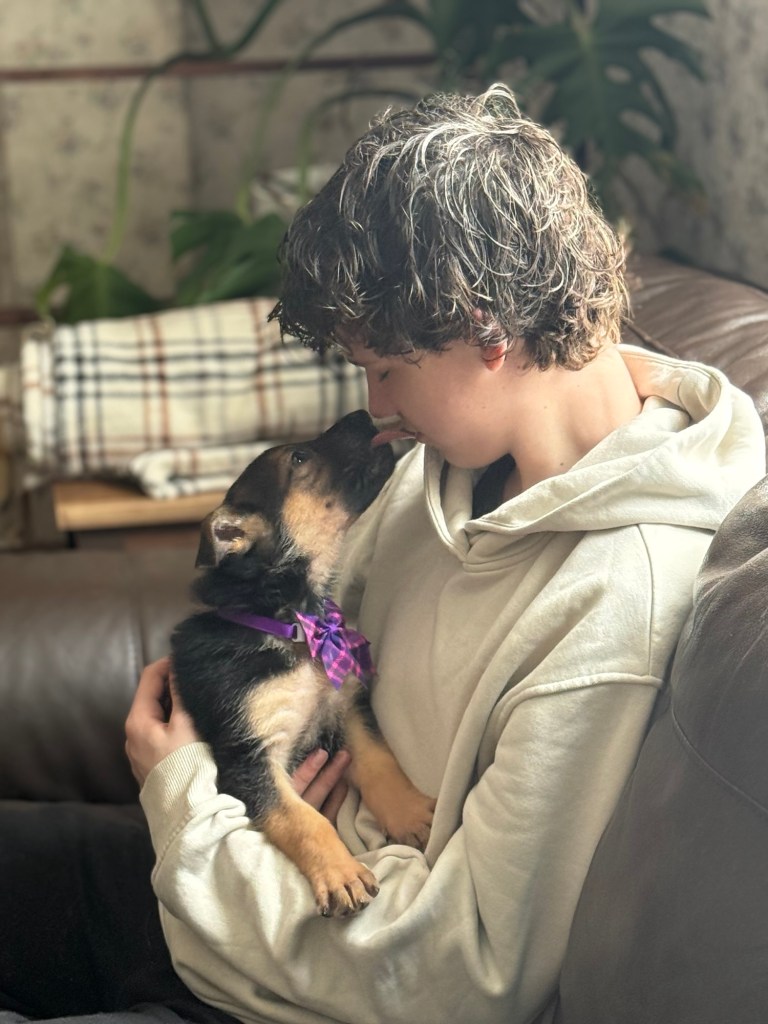 Our puppies aren’t just raised, they’re nurtured. From the very first day, each puppy is handled daily, exposed to gentle sounds, textures, and experiences that help build confidence and resilience. By the time they go to their new homes, they are familiar with car rides, basic crate training, and the rhythm of family life.