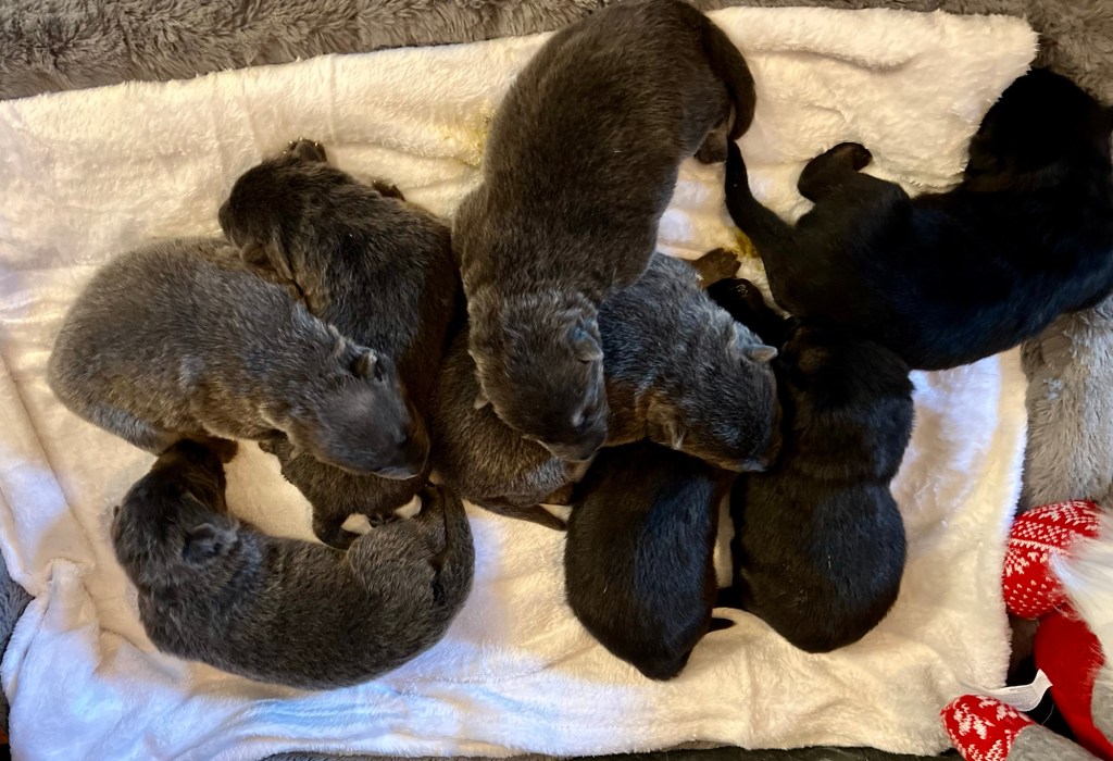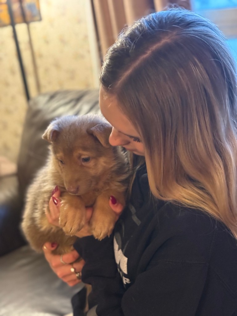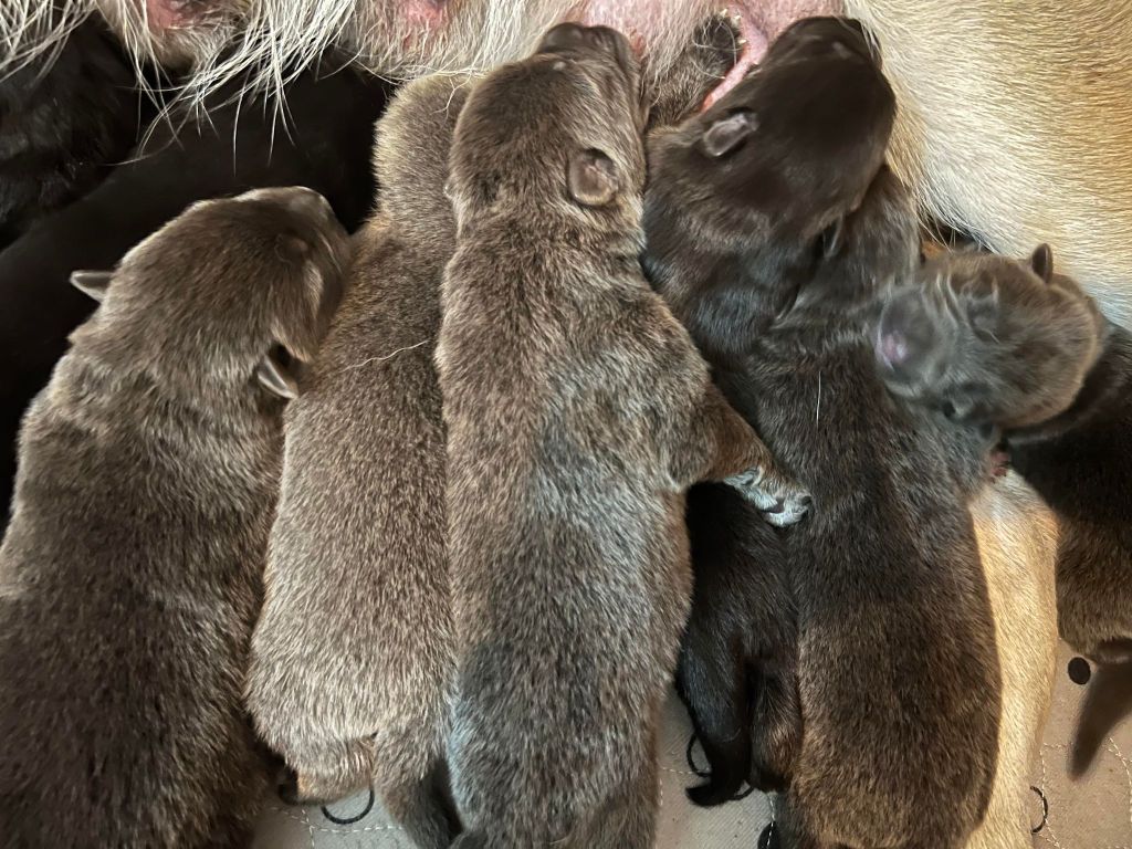 Lucy lives in Windsor with her two adopted sisters, a shepherd rescue and a mixed breed, who are fully convinced these puppies belong to them. This is Lucy’s first and only litter. She had a textbook pregnancy and delivery and has proven herself to be a calm, attentive, and exceptional mother. The puppies have begun the weaning process and are now benefiting from early social lessons as they learn how to be confident, well-mannered country dogs.