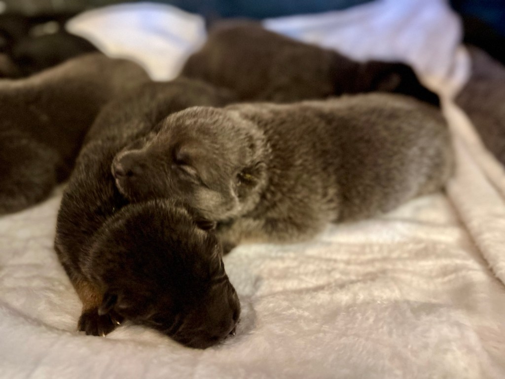 For the first two weeks of our pups lives, we focus on providing comfort to mama while the pups, who are blind and deaf at this stage, learn to nurse, sleep and thrive. Weeks 3+ are rather exciting while our puppies open their eyes, begin to hear and eventually start to stumble and learn to walk around. At this point we can begin to learn more about our puppies and begin to evaluate personality.