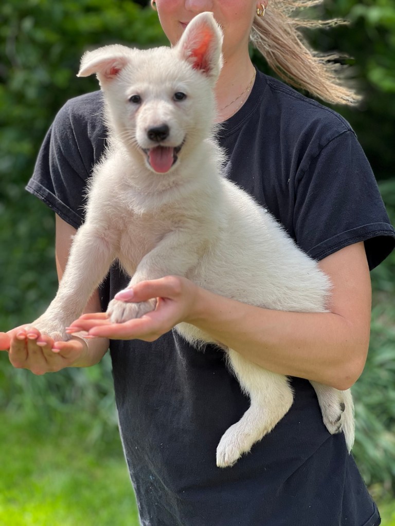 Both parents come from 7th generation White Shepherd lines with straight backs, strong working structure, and proven healthy backgrounds. They are confident, stable dogs who welcome visitors of all ages while remaining deeply devoted to their families.