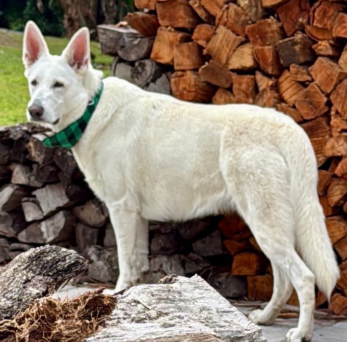 Whylie is a proven producer with a gentle, affectionate personality and a lovable, larger-than-life presence. Indoors, he is a relaxed couch companion. Outdoors, he is playful, energetic, and social with both people and dogs. His previous white and sable puppies have matured into striking, well-rounded family dogs with stable, confident temperaments and strong bonds to their people. Whylie’s offspring are known for their attentiveness to children, natural alertness, and intuitive connection with their families. They turn heads for their looks, but are valued most for their loyalty and character.